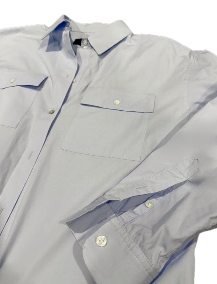 Fresh, light blue cotton button-down, double breasted pockets. Nili Lotan perfection. This pre-loved item is a final sale.