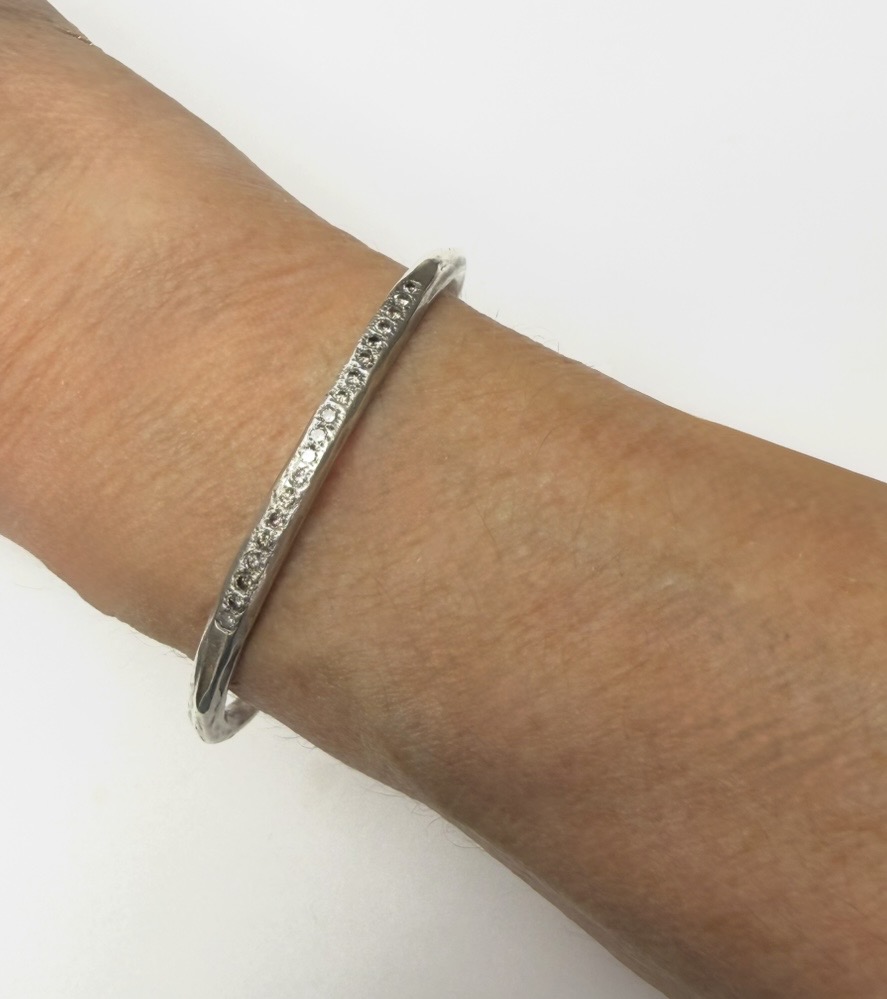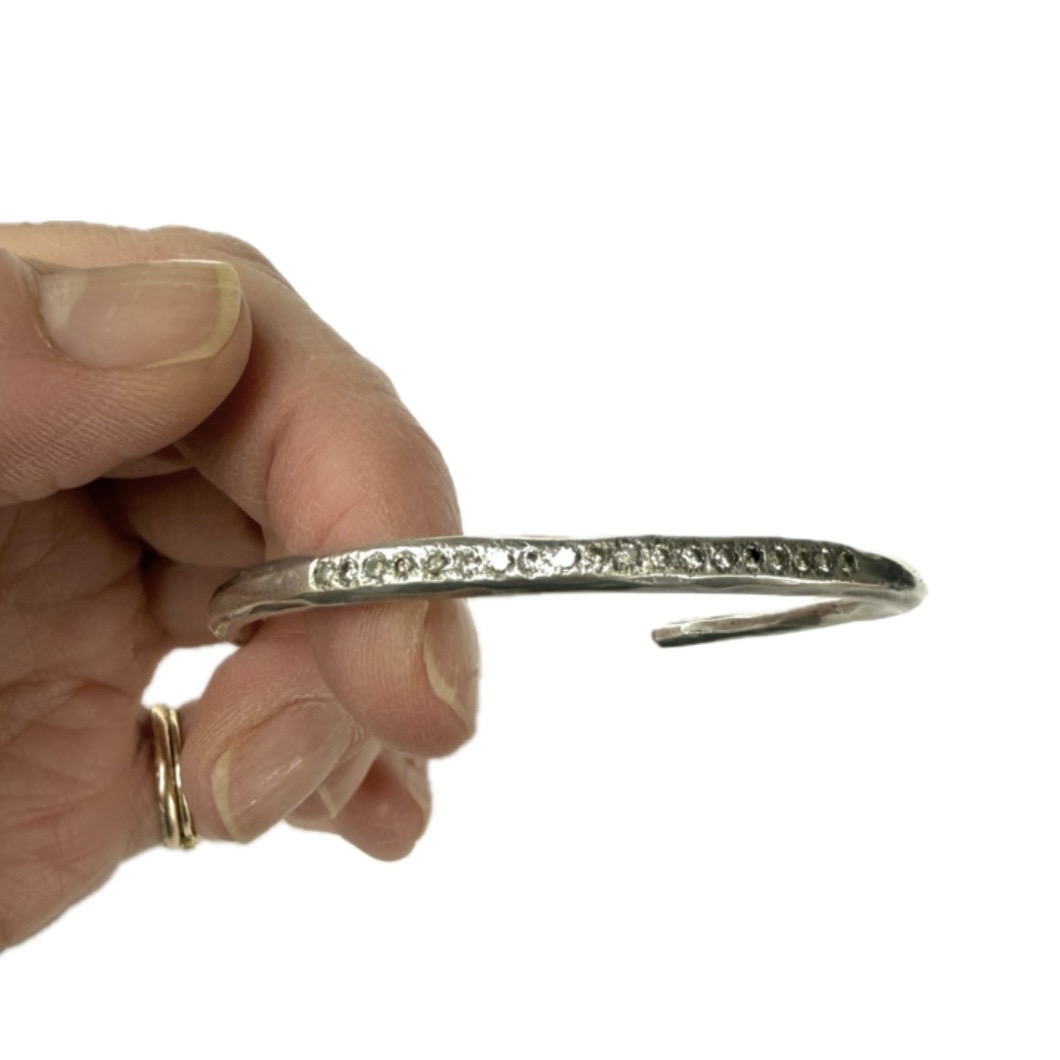 Handmade sterling silver cugg with a pave row of diamonds. This'll play well with friends, no? This pre-loved item is a final sale.