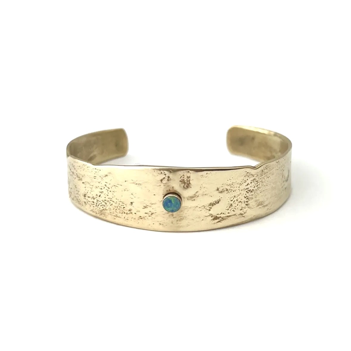 Wide bronze cuff bracelet with feature, bezel-set opal cabochon... oxidized organic texture, satin finish. Did you know: the spiritual properties of opala are confidence, optimism and hope. Lovely!