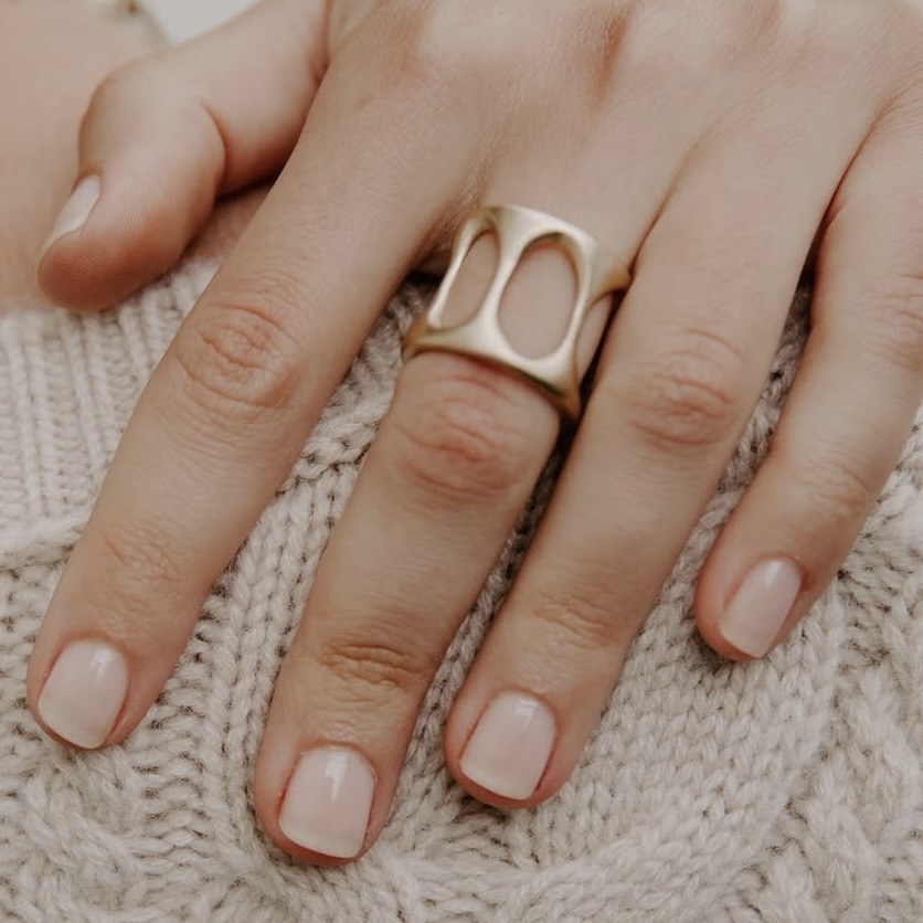A gorgeously sculptural, wide 10k yellow gold cut-out ring. 11/16" wide.