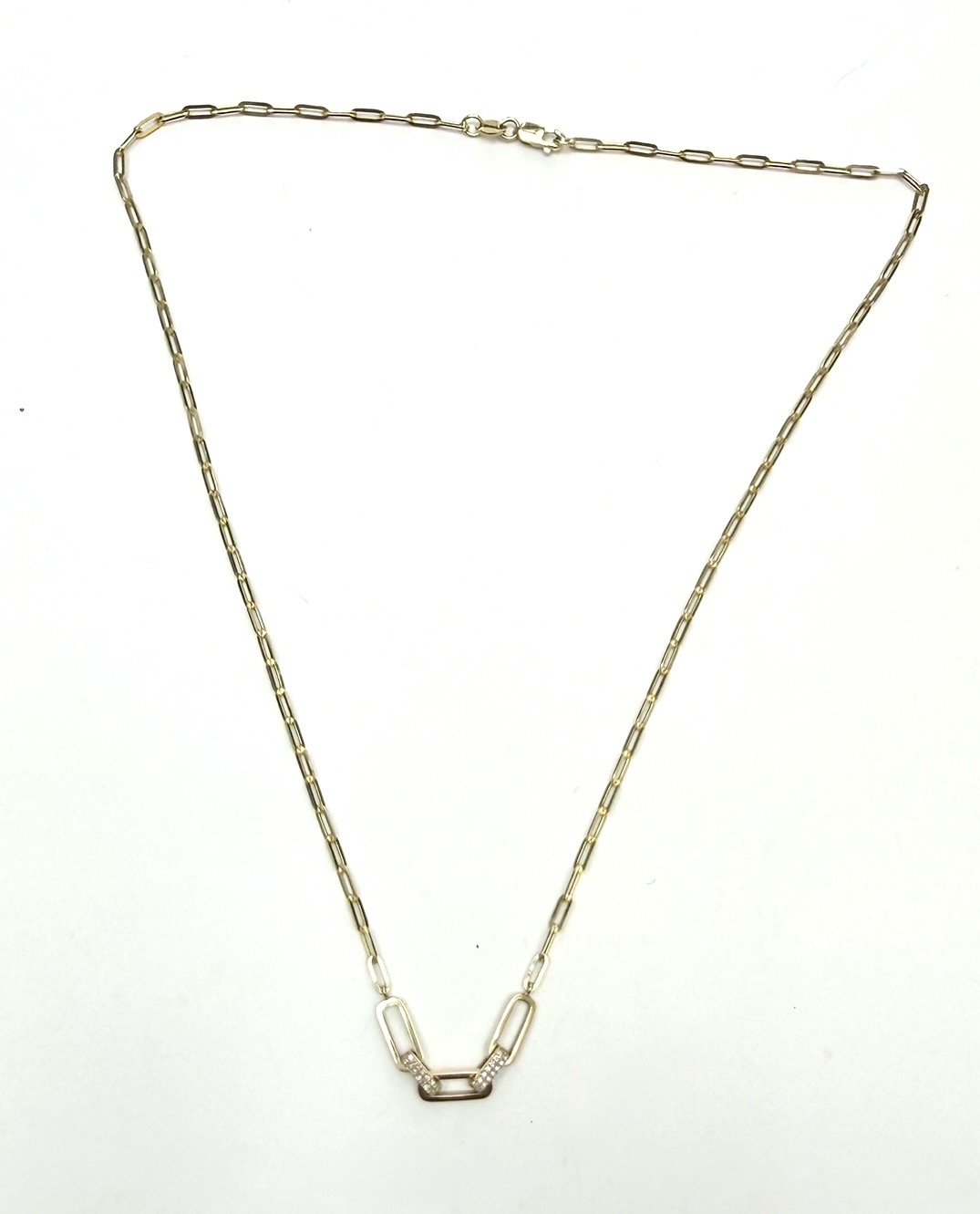 Luxe, everyday 14k yellow gold neckchain with 2, white diamond pave link detail. LOVE!