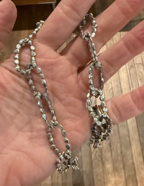 Completely handmade, solid sterling silver pebble link necklace, hoold clasp.
