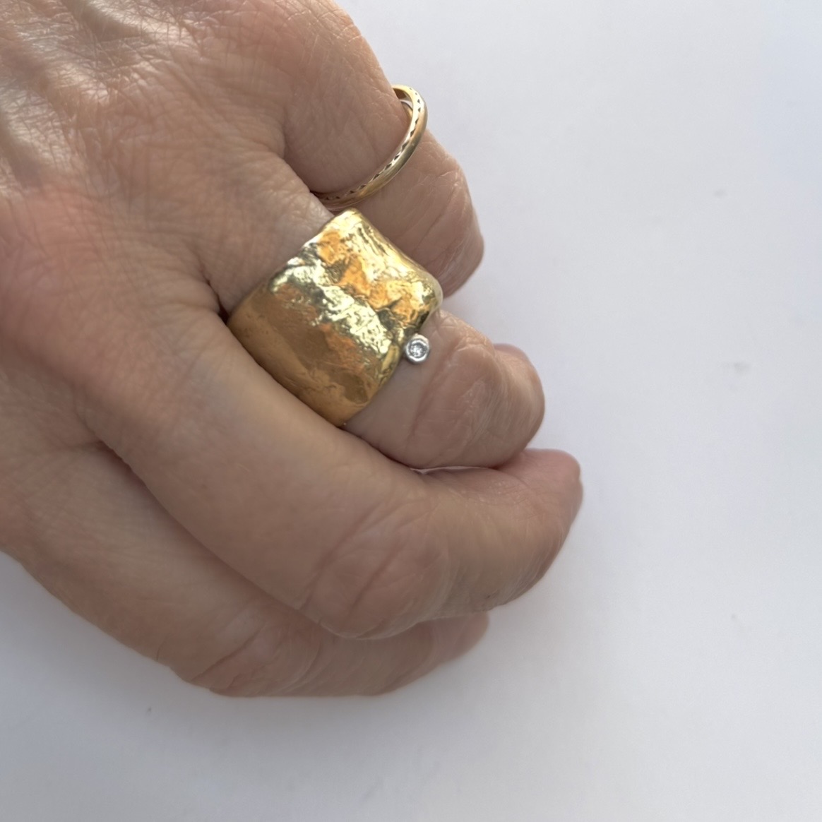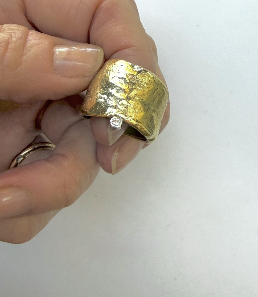 Fat, textured bronze cigar band with off-set white diamond. This pre-loved item is a final sale.