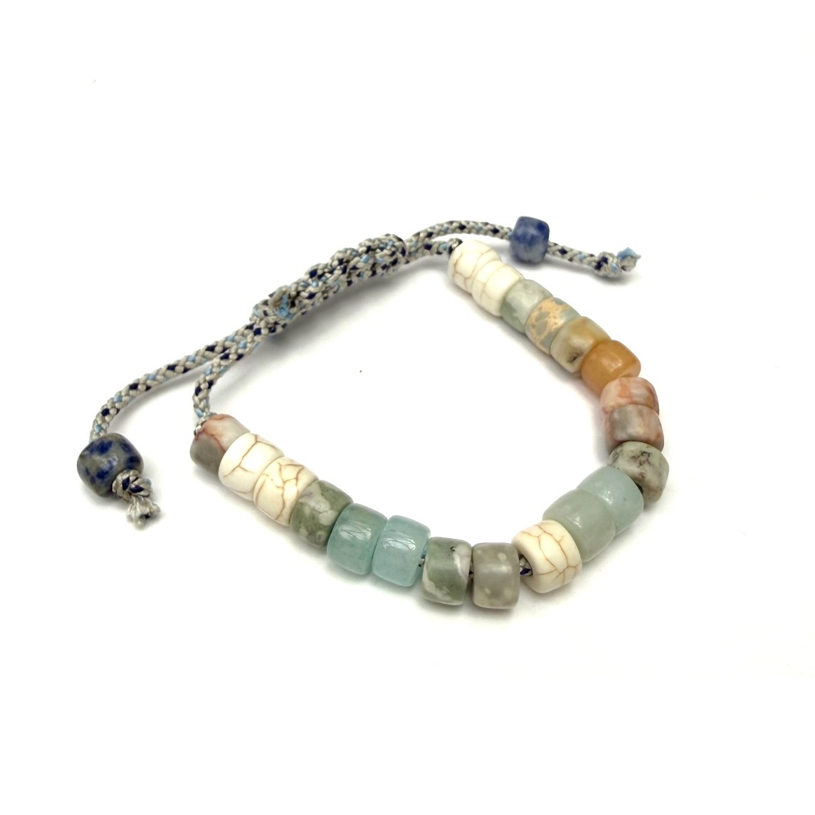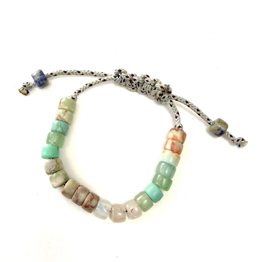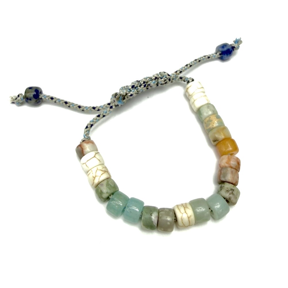 Pale-colored multi-tonal trade beads on Japanese double-woven silk. The easy slip knot closure is perfect for your desired fit.