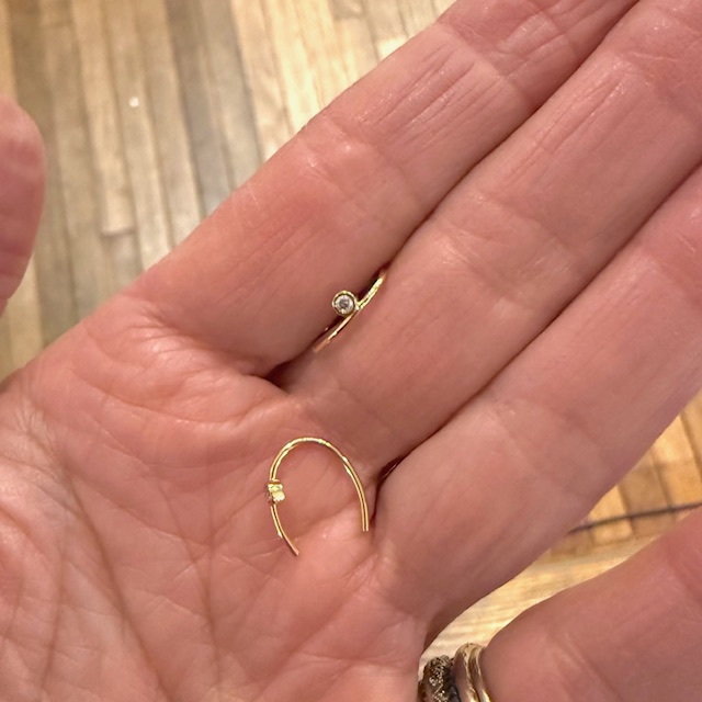Tiny gold plated brass French open earwire hoops with off-set cz detail. .5" drop length, backs included!