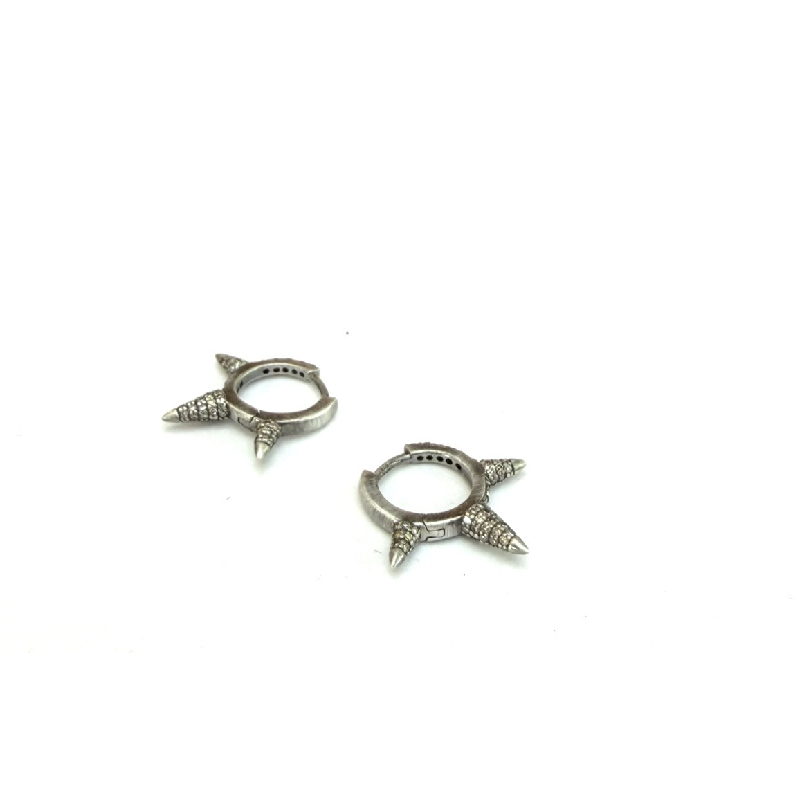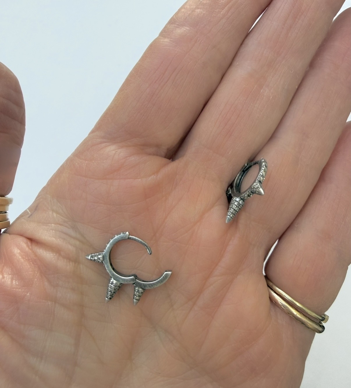 Sterling silver and diamond huggie hoops with spike detail. SO COOL! This pre-loved item is a final sale.