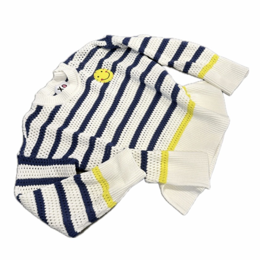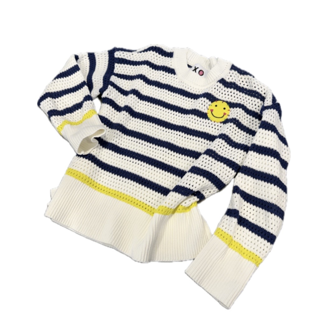 Open knit Kerri Rosenthal XOKR sweater with embroider patch smile detail. Killer cute! This pre-loved item is a final sale.