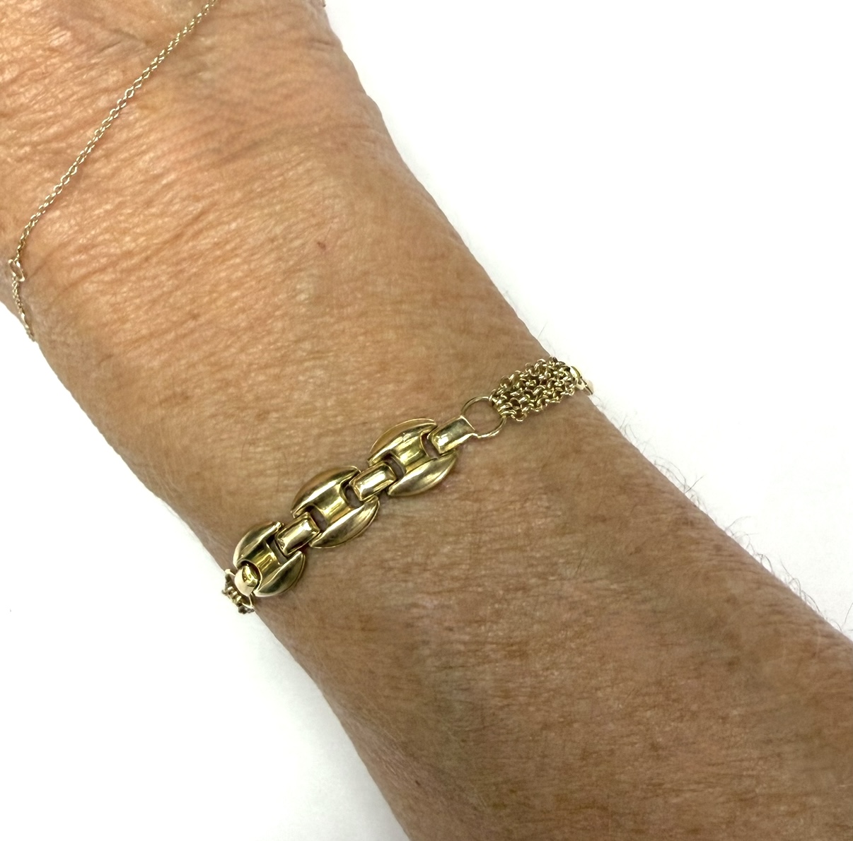 Antique 14k yellow gold, puffy mariner link bracelet, 7.25". Yes, it's amazing!