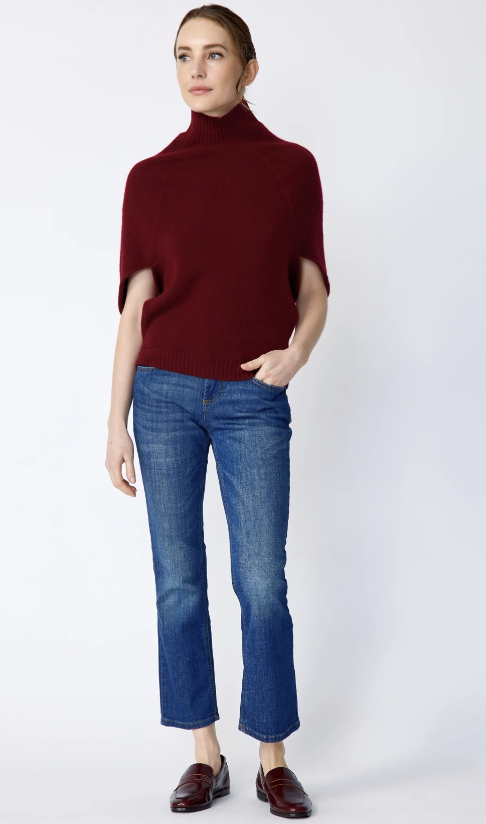 The cashmere Cape Sweater defines simplicity. Featuring a ribbed mock t-neck, ribbed hem and cape sleeve open, this style is as chic as it is effortless. Mock turtleneck shape, cape detail, rib trim at neck and hem finish. 100% cashmere, dry clean or hand wash. Made in Madagascar, Kal Rieman proudly partnered with a factory run by a woman who provides women artisans with secure employment, health and retirement benefits, and development programs in exchange for their work. This style is made with yarns from Todd & Duncan, a Scottish mill established in 1867.
