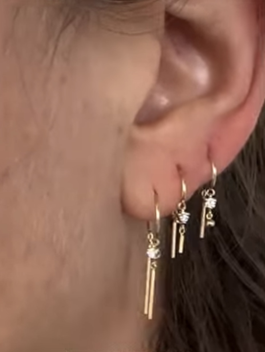 Streamlined swinging 14k yellow gold and 2mm white prong set diamond earring. 8mm hoop, 18mm total length. Price reflects a SINGLE earring - if a pair is desired, please select a quantity of 2. (Shown with Pendulum earring in image 2, see more options in image 3)