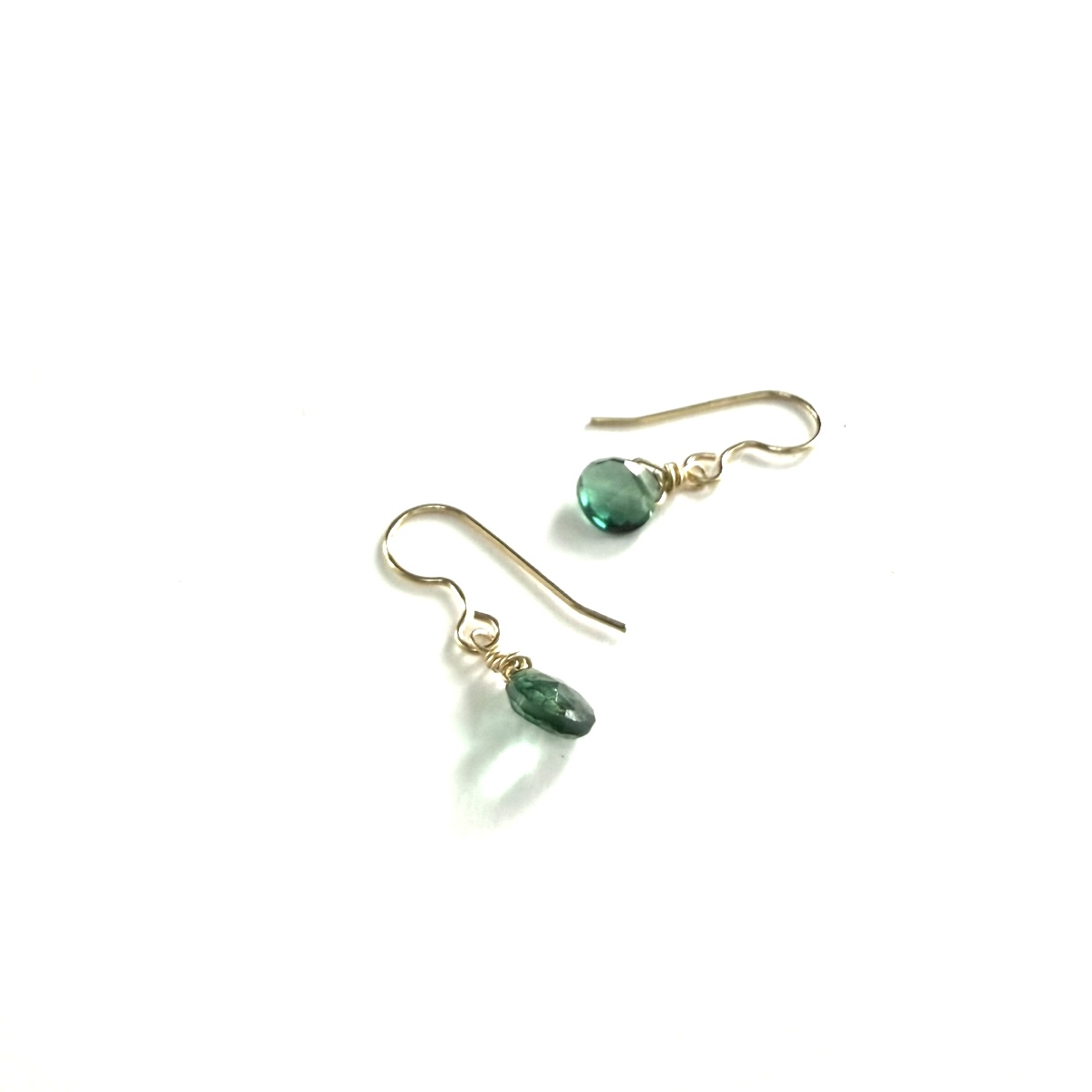 Faceted indicolite tourmaline teardrops on sterling silver earwire, .75" drop length.